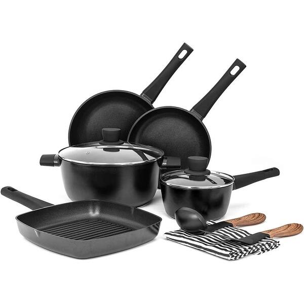 Wholeale Non tick Cookware et - Popular Home Kitchen Pot et Granitestone Original 5-Piece Nonstick Cookware Set, Scratch-Resistant Pots and Pans, Granite-coated Anodized Aluminum, Dishwasher-Safe, PFOA-Free Kitchenware As Seen On TV ENSEMBLE DE 5 PIÈCES PIERRE NOIRE Aeternum Stone In Black, Battery Pots And Lids, Set Of 5 Pieces, Non Stick Steel, 2 Pans, 1 Casserole, 1 Pan, 1 Lid, Suitable For Induction, Stone Line In Black, Black