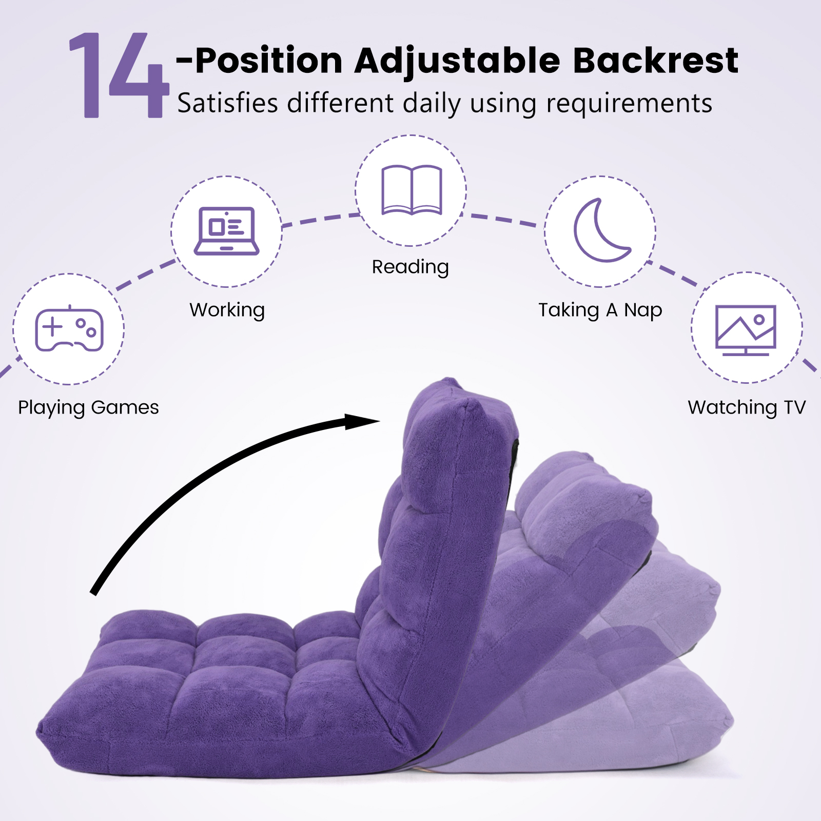 34 FR Costway Chaise De Sol Réglable 14 Positions Pliable Pour Gaming Avec Coussin Violet canapé de jeu berçant pliable et réglable à 14 positions offrant un confort personnalisable pour jouer, lire ou se détendre. Son design pliable le rend facile à ranger, tandis que les positions polyvalentes offrent un soutien personnalisé Livré entièrement assemblé : ce canapé de jeu est livré entièrement assemblé : il suffit de le retirer de la boîte. Avec un design portable et pliable, il est idéal pour les appartements, les dortoirs, les salles de jeux, les bureaux à domicile ou lorsque vous voyagez Giantex Chaise de Jeu au Sol Réglable avec 14 Positions, Fauteuil Inclinable Pliant Rembourré avec Éponge Haute Résilience, Canapé-Lit Inclinable (Bleu