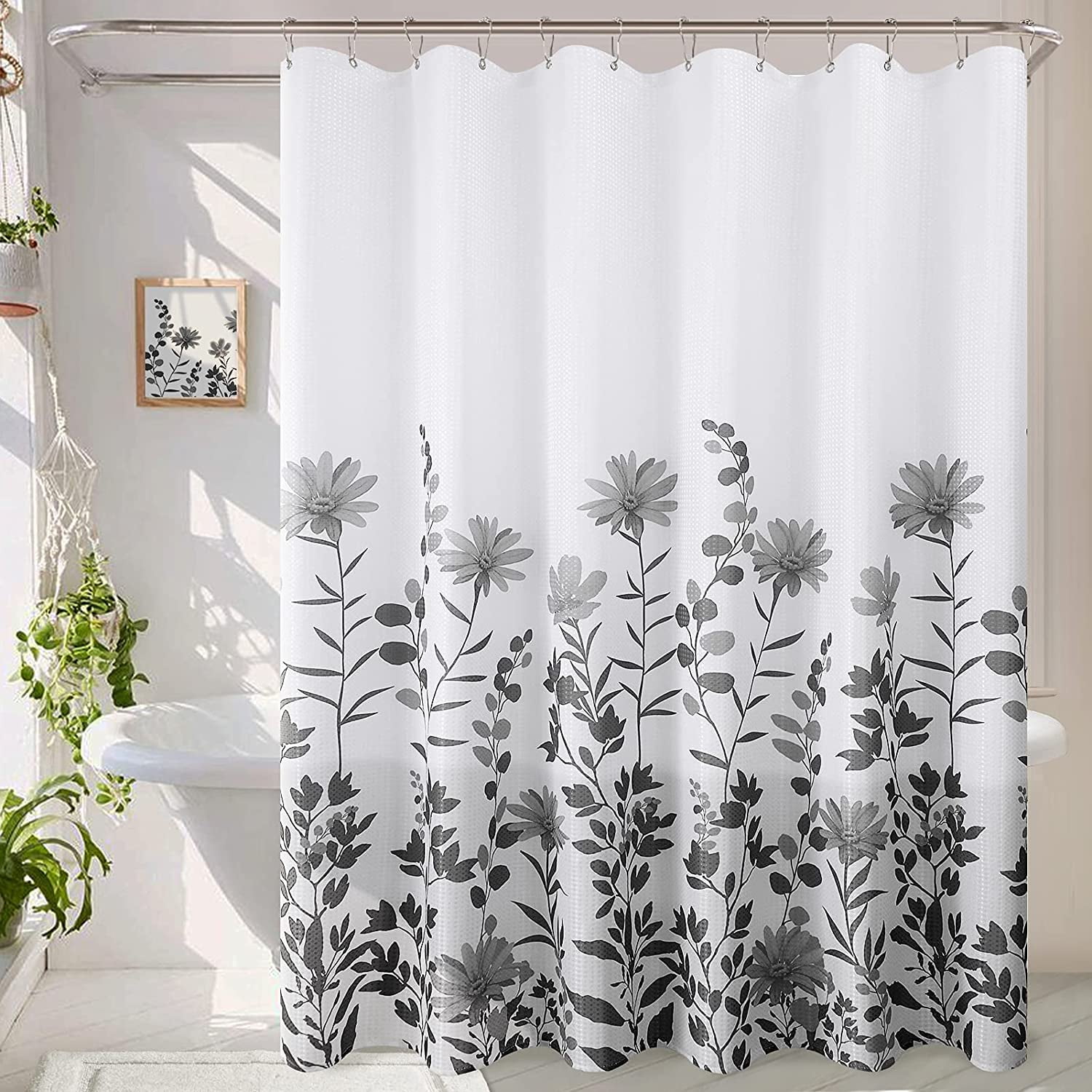 (La tringle n'est pas incluse). ✧Impression : technologie d'impression numérique HD, couleurs vives sans décoloration. Rideau de douche de 183 x 183 cm, motif floral abstrait pour salle de bain, style minimaliste bohème avec feuilles, rideau de douche moderne du milieu du siècle avec crochets Qualité supérieure : le rideau de douche Gricol est fabriqué en polyester imperméable haute densité. Doux et robuste, il offre non seulement une longue durée de vie, mais aussi un aspect neuf au fil du temps Ne pas utiliser d'eau de Javel ni sécher ✧Les mesures étant prises à la main, les tailles indiquées peuvent varier légèrement. Dimensions et installation : 183 x 183 cm (l x H), taille standard de douche/baignoire, parfaite pour créer un environnement de bain confortable. ✧Qualité : livré avec 12 crochets, facile à installer et à enlever. Matériaux de qualité supérieure et fonctions pratiques : résistant à l'eau, séchage rapide, inodore, sûr, durable, respectueux de l'environnement et ourlet renforcé. 1 rideau de douche avec 12 œillets métalliques, 12 crochets en forme de C. Ce rideau de douche est coloré sans paraître trop lumineux, avec une image claire et un motif unique qui peut ajouter des points forts à la salle de bain et vous fournir un espace détendu et privé pendant la douche, beau décor esthétique abstrait vintage des années 70. Ce sera le bon cadeau de salle de bain pour votre famille et vos amis. Ruelvth Rideau De Douche En Bambou, Rideau De Douche Esthétique En Bambou Pour Salle De Bain En Tissu Imperméable Noir Et Blanc Avec Crochets, 183 X 183 Cm Caractéristiques : ✧ Dimensions : 182,9 cm (l) x 182,9 cm (H). ✧Poids : 0,4 kg. ✧Utilisations : peut également être utilisé comme tapisserie, rideau de fenêtre, nappe, couverture de plage, papier peint, toile de fond, etc. Multifonction : illuminez votre salle de bain, ajoutez une atmosphère moderne minimaliste et funky à votre salle de bain et à votre maison, peut être utilisé dans la décoration de la salle de bain, rideau de douche de maison, rideau de salle de bain d'hôtel, rideau de porte, rideau de fenêtre de salle de bain, rideaux de cuisine, rideaux de séparation de chambre, rideaux de chambre à coucher, rideaux de porte de terrasse, rideaux d'extérieur, etc. Entretien facile : il peut être nettoyé avec un rinçage rapide ou essuyé après une douche, et peut également être séché à l'air libre rapidement après le lavage à la main ou en machine. Matériel: Fait de tissu de polyester de haute qualité, imperméable, anti-humidité, lavable en machine. Design : Rideau de douche abstrait de feuille bohème... (avec un revers blanc). ✧Veuillez le laver à l'eau froide à la main ou en machine. Caractéristiques : ✧ Matériau : tissu polyester à séchage rapide, mieux que les rideaux de douche en vinyle ou en plastique. Ce rideau de douche en tissu est doux et confortable, la surface du tissu est délicate et a une certaine élasticité.