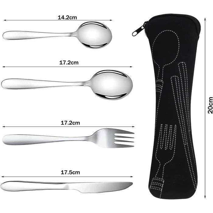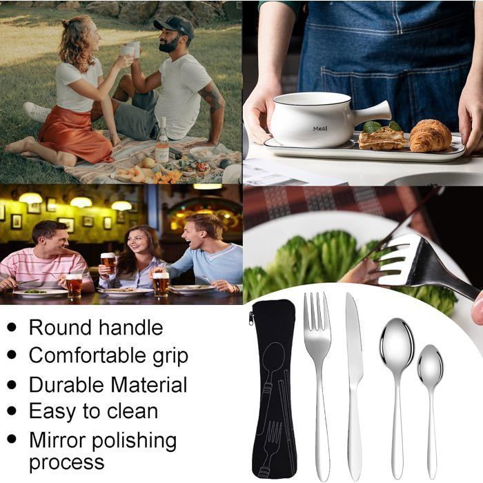 Facile à nettoyer : cet ensemble de couverts de pique-nique passe au lave-vaisselle. Parfait pour les voyages, le camping et l'utilisation quotidienne : le colis est livré avec 4 ensembles de 4 couverts 1 qui le rendent facile à transporter pendant les voyages, le travail ou même pour un pique-nique avec la famille. Cet ensemble portable est compact, ce qui le rend facile à transporter, et pèse seulement 63 g, il est léger. À propos de cet article 1. Parfait pour les voyages, le camping et une utilisation quotidienne : le colis est livré avec 4 ensembles de 4 en 1 couverts qui le rendent facile à transporter pendant les voyages, le travail ou même pour un pique-nique avec la famille. 2. Robuste : cette argenterie de camping est fabriquée en acier inoxydable robuste et léger qui peut être utilisé pendant une longue période. 3. Facile à transporter : ces ustensiles de camping empilent 3 unités ensemble après utilisation, assurez-vous de fermer les boutons. Lot De 4 Couverts En Acier Inoxydable Avec Fourchettes, Cuillères, Couteaux, Décapsuleurs Pour Camping, Pique-nique Ensemble de 4 couverts avec étui portable, couverts en acier inoxydable, ensemble d'ustensiles de camping avec sac en néoprène pour l'extérieur, voyage, pique-nique, bureau, école, boîte à déjeuner Facile à transporter : ces ustensiles de camping empilent 3 unités ensemble après utilisation, assurez-vous de fermer les boutons. Le kit de couverts deluxe OUTWELL est le compagnon idéal pour tous les repas en camping, offrant simplicité et confort d'utilisation. Il s'adresse aussi bien aux amateurs d'aventures que ceux cherchant un équipement fiable pour des moments conviviaux en plein air Ensemble de Couverts 4 Pièces, Couverts en Acier Inoxydable, Voyage Ensemble Couverts Set, Couverts portatifs en Acier Inoxydable - Sport Nous vous recommandons de les nettoyer après le déchargement et de les sécher peu de temps après le nettoyage. Les unités se clipsent ensemble pour un rangement et une organisation compacts.