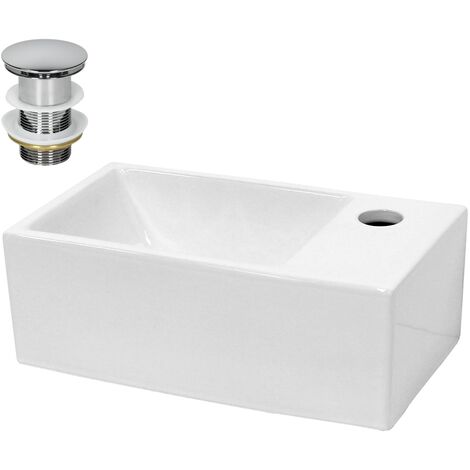 Céramique et acier inoxydable de haute qualité Diamètre de la garniture d'écoulement: env. Ø 45 mm Poids: env. 5,8 kg Robinetterie: à droite La bonde de vidage s'installe très facilement dans n'importe quel lavabo et est immédiatement prête à l'emploi. Caractéristiques Céramique de haute qualité 1 x Vidage pour lavabo sans trop-plein Vasque à Poser Salle De Bain ECD Germany Lavabo Vasque En Céramique Blanc 350x205x125 Mm Rectangulaire, Bonde Incluse En Céramique/Acier, Trou Pour Robinet à Droite, Mini Lave-Mains Angulaire à Poser De Salle De Bain Toilette Lave Main Wc Le design angulaire avec son bord étroit allie un aspect esthétique à un espace de lavage particulièrement peu encombrant. CÉRAMIQUE DE HAUTE QUALITÉ - Ce vasque à poser en céramique de haute qualité de ECD Germany apporte un design moderne à chaque salle de bains ou toilettes pour invités Cette technologie dite push-open a été développée pour permettre une compression rapide et facile du lavabo. Convient à presque tous les lavabos Description Avec son design moderne, ce lavabo en céramique de haute qualité d'ECD Germany met en valeur n'importe quelle salle de bains ou toilettes pour invités. Le mitigeur et le matériel de montage ne sont pas inclus dans la livraison Système d'évacuation pour lavabo sans trop-plein Description Vous pouvez ouvrir et fermer la bonde de vidage en appuyant simplement sur le couvercle. Deux trous pour le montage mural à l'arrière Lavabo 350x205x125 mm en céramique blanche avec kit d'écoulement sans POLYVALENT - Utilisez ce modèle soit comme lavabo suspendu avec montage mural, soit comme lavabo à poser sur une table ou un meuble. Technologie Push-Open pour une utilisation confortable DESIGN MODERNE - Le design anguleux avec un bord étroit combine un aspect esthétique avec un espace de lavage à la fois généreux et peu encombrant. Le bouchon se dévisse facilement et facilite le nettoyage. Céramique de salle de bains d'une seule pièce Installation facile LAVABO - CÉRAMIQUE DE HAUTE QUALITÉ - Ce lavabo en céramique de haute qualité d'ECD Germany met en valeur toute salle de bains ou toilettes d'invités grâce à son design moderne. FACILE À INSTALLER - La bonde pour lavabo avec trop-plein peut être installée en quelques étapes, sans outils. Cette technologie dite push-open a été développée pour permettre de comprimer le lavabo aussi rapidement et facilement que possible. Lavabo Information technique Matériau: céramique Couleur: blanc Dimensions (LxPxH): env. 350 x 205 x 125 mm Description Utilisez ce modèle soit comme lavabo suspendu avec montage mural, soit comme lavabo à poser sur une table ou un meuble. GARNITURE DE VIDAGE - Avec la soupape d'évacuation, tu peux ouvrir et fermer le couvercle d'une simple pression du doigt. Description du produit : Ce lavabo en céramique de haute qualité avec vidage d'ECD Germany met en valeur chaque salle de bains ou WC d'invités grâce à son design moderne