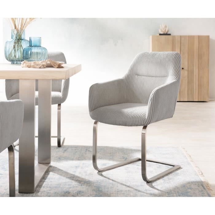 Chaise-rembourrée Elso-Flex 4 Pieds Coniques Acier Inoxydable Bouclé Avec une assise arrondie, rectiligne, de forme classique ou moderne, avec ou sans accoudoirs, ils affichent un bel aspect pour un ensemble plein d'harmonie. 64 cmMatériaux: Coque du siège: Microvelours (100% polyester), Cadre du siège: Acier inoxydable brosséCouleur: Coque du siège: Beige vintage, Cadre du siège: ArgentRembourrage: Noyau à ressorts ensachés recouvert d'une mousse de qualité supérieure d'un poids spécifique de 40kg/m3Surface: DouxÉtat d'assemblage: Partiellement monté, les éléments individuels doivent être montésPoids en kg: 11Grâce à sa fabrication de haute qualité, il peut supporter une charge de 150 kg Chaise de salle à manger Gaio Flex microvelours beige vintage 4 pieds coniques acier inoxydable brossé Chaise-rembourrée Xana-Flex avec accoudoirs 4 pieds coniques acier Grâce au processus de brossage, le pied garde toute sa brillance. Dimensions approx. L'expert en design de commerce électronique propose des meubles exclusifs, durables et tendance qui répondent parfaitement aux exigences les plus élevées en matière d'ambiance de vie haut de gamme! Le pied de la chaise est en acier inoxydable de haute qualité et brossé à la main. Sa structure est particulièrement résistante à l'oxydation et à l'usure Dimensions: L64 x P58 x H86 cm | Matériel: Tissu microfibre | Couleur: Beige | Poids en kg: 11 Sa structure est particulièrement résistante à l'oxydation et à l'usure. Coque d'assise élégante avec accoudoirs continus | Fabriqué en microvelours doux et résistants Les accoudoirs qui partie intégrante du dossier forme une enveloppe compacte et confortable. Microvelours est un tissu d'ameublement idéal pour la conception de chaises modernes. Découvrez un style moderne bien défini et ajoutez un peu de fantaisie à votre salle à mangerLe pied de la chaise est en acier inoxydable de haute qualité et brossé à la main. 45 cmHauteur d'assise approx. 47 cmHauteur du dossier approx. Cadre en forme de trapèze discret | Cadre en acier inoxydable brossé à la main Depuis 2008, la marque DELIFE est synonyme de style, d'idées de vie uniques et de style de vie exceptionnel. Chaise de salle à manger Pejo microvelours taupe vintage - Système de chaise par Dans un style plus tendance, les pieds en trapèze ajouteront une touche d'élégance aux chaises avec une assise arrondie ou droite, de forme classique ou moderne, avec ou sans accoudoirs aux couleurs modernes ou classiques