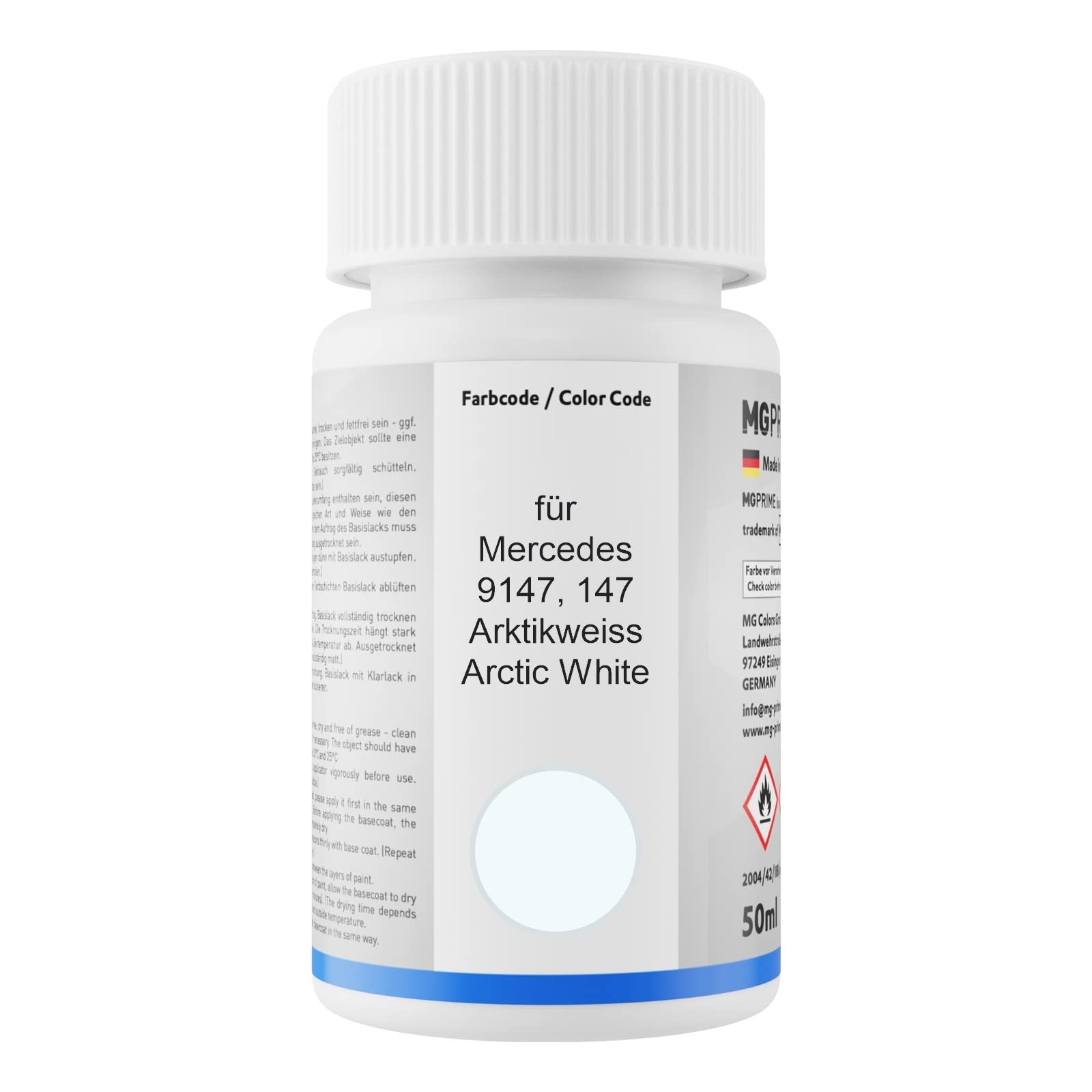 MG PRIME Peinture voiture Bombe aérosol pour Mercedes 147 / 9147 Arktikweiss / Blanc Arctique de base de 400ml Attention: Cette laque doit être recouvrir du vernis clair. Ensuite seulement, appliquez 1 à 2 couches de la base pour couvrir. Pour Mercedes C-Class (1986 - 1990) Après séchage, la surface de la laque est complètement mate.) Agiter l'aérosol pendant au moins 2 minutes avant l'utilisation. Qualité professionnelle – Fabriqué en Allemagne Pouvoir couvrant très élevé grâce à une bonne teneur de pigments dans la peinture. Séchage rapide, excellente adhésion et précision des couleurs extrêmement élevée. Qualité professionnelle - Fabriqué en Allemagne. Vous trouverez autres informations dans le descriptif du produit Pour Mercedes Citan (2013 - 2025) …et plus Peinture Bombe Blanc Peinture Mercedes 147 Blanc Artic Ud83dude97 Spraymax 400ml Peinture Carrosserie Blanc L'objet cible doit avoir une température de 20°C à 25°C. Idéal pour les travaux de réparation sur les pièces de la carrosserie, en métallique et en plastique (dans ce cas éventuellement un primaire pour plastique peut être nécessaire) buse de tête de pulvérisation réglable Bombe De Peinture Mercedes de 400Ml. Code couleur 9147 , Couleur ARKTIKWEISS Retouchez votre Carrosserie Automobile Simplement pour un rendu Professionnel Marque de voiture: Pour Mercedes Codes de peinture: 147, 9147 Noms de peinture: Arktikweiss, Blanc Arctique, Arctic White Taux de brillance: brillant Utilisation La surface doit être dépoussiérée, sèche et exempte de graisse - nettoyez-la avec un nettoyant silicone si nécessaire. Bombe aérosol | Mercedes | Peinture voiture | MG PRIME Régulation des COVAvec l'achat, vous acceptez le règlement COV applicable 2004/42/CE ou 199/13/CE. (Non inclus dans le champ d'application).