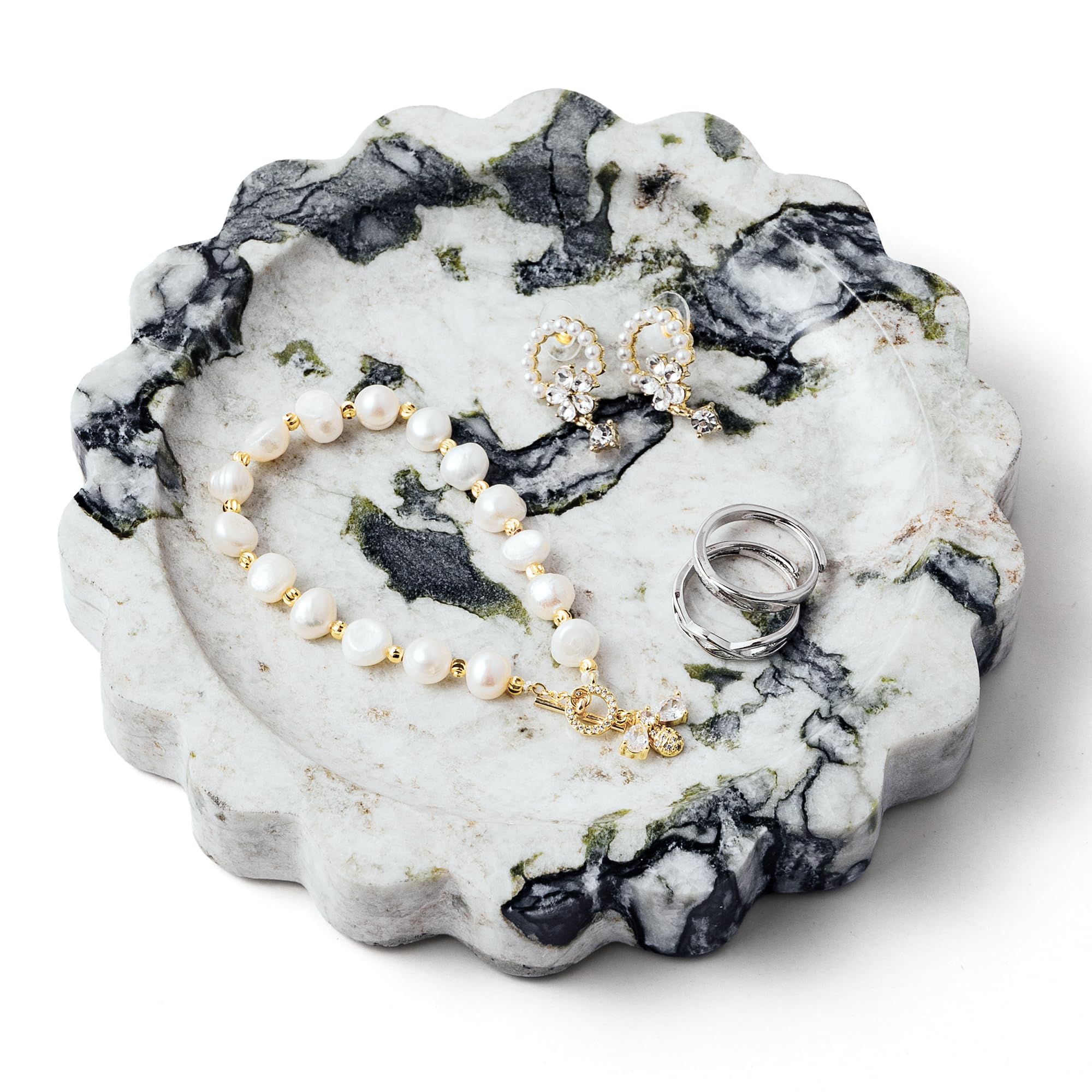 Dimensions : 10,7 x 2 cm. Couleur : vert calacatta. Veuillez continuer à attendre avec impatience nos produits à venir. Robuste et facile à entretenir : fabriqué à partir de véritable marbre naturel, notre plateau de courtoisie est imperméable, résistant à l'huile et aux rayures. Plateau de lavabo en marbre luxueux : rehaussez votre décoration d'intérieur avec notre plateau de lavabo circulaire festonné WORHE fabriqué à partir de marbre Calacatta Viola exquis. WORHE développe du marbre naturel, de l'acrylique, de la quincaillerie pour la maison ou des accessoires, vous donnant une expérience d'intérieur confortable et élégante. Son design festonné et sa texture en marbre naturel se fondent parfaitement dans les intérieurs modernes et traditionnels. Cet élégant plateau rond est fabriqué à la main à partir de luxueux marbre Calacatta Viola, connu pour ses veines violettes audacieuses et son fond crème. Parfait pour servir des collations, des fruits ou des desserts, ou comme plateau décoratif sur votre table basse, votre vanité ou votre entrée La finition polie améliore sa robustesse et rend le nettoyage sans effort. Noir Lot De 5 Plateaux Ovales En Bois - Petit Plateau Rond En Bois De Bambou Massif - Plateau De Plateau Marbre - Décorations et cadeaux parfaits pour Noël, un anniversaire, un anniversaire de mariage et plus encore. Améliorez votre décoration d'intérieur : ajoutez une touche de sophistication à n'importe quelle pièce avec notre plateau de courtoisie WORHE en marbre. Utilisez-le comme organisateur de bijoux, porte-parfum ou porte-clés. Plateau en Bamboe plateaux en bois petit plateau rond en bambou bol de service en bois Matériau : marbre naturel. Forme : ronde. Remarque : 1. Il est normal que de petits trous et de petites fissures internes apparaissent en raison des caractéristiques de la pierre naturelle. 2. Le numéro 2 est exactement identique, les motifs peuvent être différents les uns des autres. 3. Utilisez de l'eau ou des vêtements humides pour laver et nettoyer. Petit plateau à bijoux en marbre naturel Calacatta Viola avec Il suffit de l'essuyer avec un chiffon humide pour garder son aspect impeccable Polyvalent et élégant : ce plateau décoratif en marbre n'est pas seulement destiné à être affiché, il est également pratique.