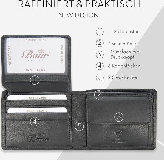 Afin de garantir des valeurs importantes telles que la qualité, la durabilité et la durabilité, nos produits en cuir sont fabriqués par des partenaires soigneusement sélectionnés dans un savoir-faire traditionnel. Tous les billets en euro peuvent être rangés facilement sans plis. Résistant et durable Porte Feuille Cuir Baur Portefeuille Pour Homme En Cuir Véritable | Portefeuille Avec Protection RFID | Portefeuille Format Paysage | Porte-monnaie Avec Compartiment à Monnaie | Portefeuille Avec De Nombreux Porte Feuille Homme Grand Format Cuir de qualité supérieure Protection RFID et NFC : ce portefeuille en cuir est équipé d'un bloqueur RFID pour protéger vos cartes contre le vol de données privées et sensibles. La couche de protection est intégrée dans le portefeuille complet. Sacs à main, petite maroquinerie, portefeuilles et accessoires. Un choix énorme en petite maroquinerie cuir et de belles idées cadeaux ! Profitez de l'expérience et découvrez toutes nos gammes en cuir véritable. Livraison rapide et gratuites sans minimum d'achat Le design fin permet de ranger rapidement et facilement le portefeuille dans la poche de pantalon, de veste ou de veste. En plus des pièces de monnaie et des billets, cela inclut des cartes, des cartes d'identité, un permis de conduire, des cartes de visite et d'autres petits objets. Une bosse dans votre pantalon ? Le QuickStacku2122 se glisse discrètement dans toutes les poches de Avec le temps, le cuir de qualité supérieure de ce portefeuille devient de plus en plus beau et développe une patine individuelle. 2 compartiments à billets + 1 compartiment à monnaie : le portefeuille en cuir véritable pour homme possède un double compartiment à billets. Élégant coffret cadeau inclus Protection et sécurité Chacun de nos portefeuilles en cuir est équipé de la protection RFID pour protéger vos données personnelles contre les accès non autorisés. Qualité et fonctionnalité optimale réunies dans un portefeuille Die Baur Herrengeldbörsen werden nur aus besten Materialien und aus echtem Leder von hochwertiger Qualität gefertigt. Le portefeuille élégant séduit par son élégance sobre et intemporelle et son design sportif. Jusqu'à 73% Portefeuille avec protection RFID | Groupon Finitions précises, précises et de qualité supérieure Idée cadeau : les portefeuilles Baur pour homme conviennent comme cadeau pour homme, père, frère, petit ami, partenaire pour un anniversaire ou pour Noël comme cadeau de Noël. Coffret cadeau élégant Erhalten Sie beim Kauf einer Baur Herrengeldbörse eine edle Geschenkbox dazu. Le cuir de qualité supérieure et la finition précise rendent le portefeuille robuste et résistant et garantissent une longue durée de vie. Style simple Ce portefeuille Baur pour homme est non seulement fonctionnel et durable, mais aussi tendance. Beaucoup d'espace : ce portefeuille pour homme en format portrait de 10 x 12,5 x 2 cm offre, grâce à ses nombreux compartiments, 6 emplacements pour cartes, 1 grande fenêtre et 4 autres poches latérales, suffisamment d'espace pour les cartes de crédit, la carte d'identité et les documents. Notre portefeuille en cuir se combine parfaitement avec votre style personnel et apporte un look moderne et élégant à votre quotidien. Unser RFID-Blocker besteht aus einer dünnen Schutzschicht, die in die Geldbörse eingearbeitet und damit nicht sichtbar ist. Cette philosophie de Baur Lederwaren se reflète dans les produits en cuir véritable avec un accent sur le design, la fonctionnalité et la durabilité.