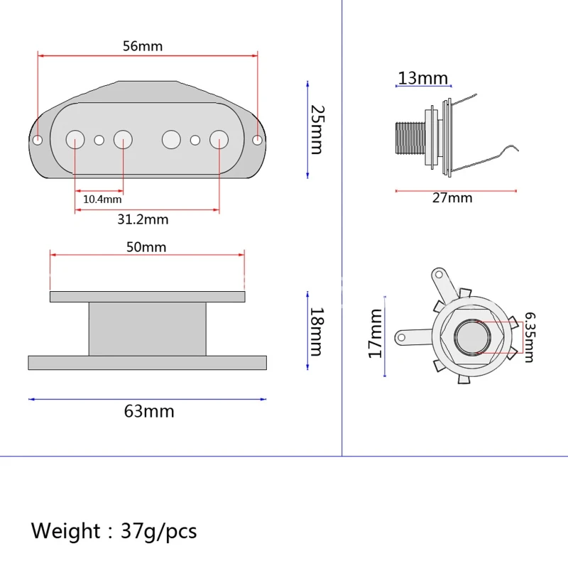 Anneau de ramassage en palissandre intégré directement dans le pick-up Pas de câblage. Pas de soudure faible bruit Convient pour les guitares Cigar Box 4 cordes Boite De Cigare Fdit Micro Rosace Guitare Boîte à Cigares Précâblée ABS Pour Guitare C Duncan Points forts de Alnicov Micros Humbucker 4 cordes pour basse Argenté Qualité sonore exceptionnelle : Les aimants Alnico et les enroulements uniques offrent une large gamme de fréquences. Polyvalence : Convient pour les guitares à quatre cordes, les basses et les guitares à cigares. Facilité d'installation : Livré avec les fils de connexion pour une mise en place rapide et efficace 7 cordes fibre de palissandre Alnico V guitare manche chevalet micro La description:- Spécialement conçu pour les guitares Cigar Box 4 cordes- Les aimants Alnico 5 ajoutent plus de concentration et une dynamique améliorée- Les bobines sont protégées par une ficelle cirée pour une protection supplémentaire de la bobine- Les vis de montage chromées pour la bague de ramassage sont incluses- Ces micros sont pré-installés avec un anneau de ramassage en palissandre,ce qui rend l'installation encore plus facileCaractéristiques:Matériel:fibre et bois de rose et Alnico 5Couleur:comme le montre l'imageEspacement des pôles:centre à centre (~ 12 mm)Micros R:12.3KTaille:83 * 48 * 22mmPoids:136g / ensembleEmballage inclus:1x micro guitare humbucker Anneau de micro en palissandre intégré directement dans le micro. Évalué à 9,22 kOhms (spécifications complètes dans la description). Humbuckers en forme de boîte à cigares pour guitare - Puissance chaude de 9,22 K grâce aux aimants Alnico