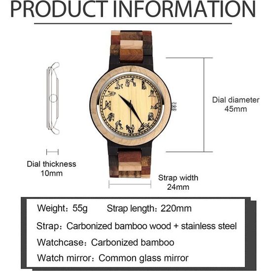 Bracelet en bois naturel, vraiment léger au poignet, sans fardeau ni effort, vous vous sentez naturel. Montre Bois Femme Montre En Bois De Santal Chronographe à Quartz Et Style Ultra Léger Montre Homme Bois L'horloge en bois doit être bien entretenue, ne pas être mouillée ou immergée dans l'eau quotidiennement. Mouvement à quartz japonais, économe en énergie, ultra-silencieux, qui garantit une mesure précise à chaque fois. Cadran : 45 mm, épaisseur : 10 mm, bracelet : 220 cm x 24 mm, poids net : 55 g, léger et confortable à porter. Nous sommes SUPBRO, vendeur de montres professionnel. Présentation du produit SUPBRO Montre en Bois pour Homme Montre Bois Homme Chronographe Quartz avec Bracelet equipement Minimaliste Mouvement à quartz japonais, économe en énergie, ultra-silencieux, qui garantit une mesure précise à chaque fois Mouvement à quartz japonais, économe en énergie, ultra-silencieux, qui garantit une mesure précise à chaque fois. Avec un look vintage qui se marie bien avec tout type de vêtement pour toutes les occasions Montre pour homme en maille milanaise noire - décontractée et sportive Tous les chronographes en bois sont des montres de décoration de luxe avec une grande valeur d’appréciation et de collection MONTRES MULTIFONCTIONNELS POUR HOMMES: Bien que toute la montre soit entièrement faite à la main, Bewell W109D est un garde-temps entièrement fonctionnel en bois de quartz. Livré chez vous au meilleur prix : SUPBRO Montre en Bois pour Homme Montre Bois Homme Chronographe Quartz avec Bracelet équipement Minimaliste Horloges tout en bois pour homme, non toxiques et écologiques.
