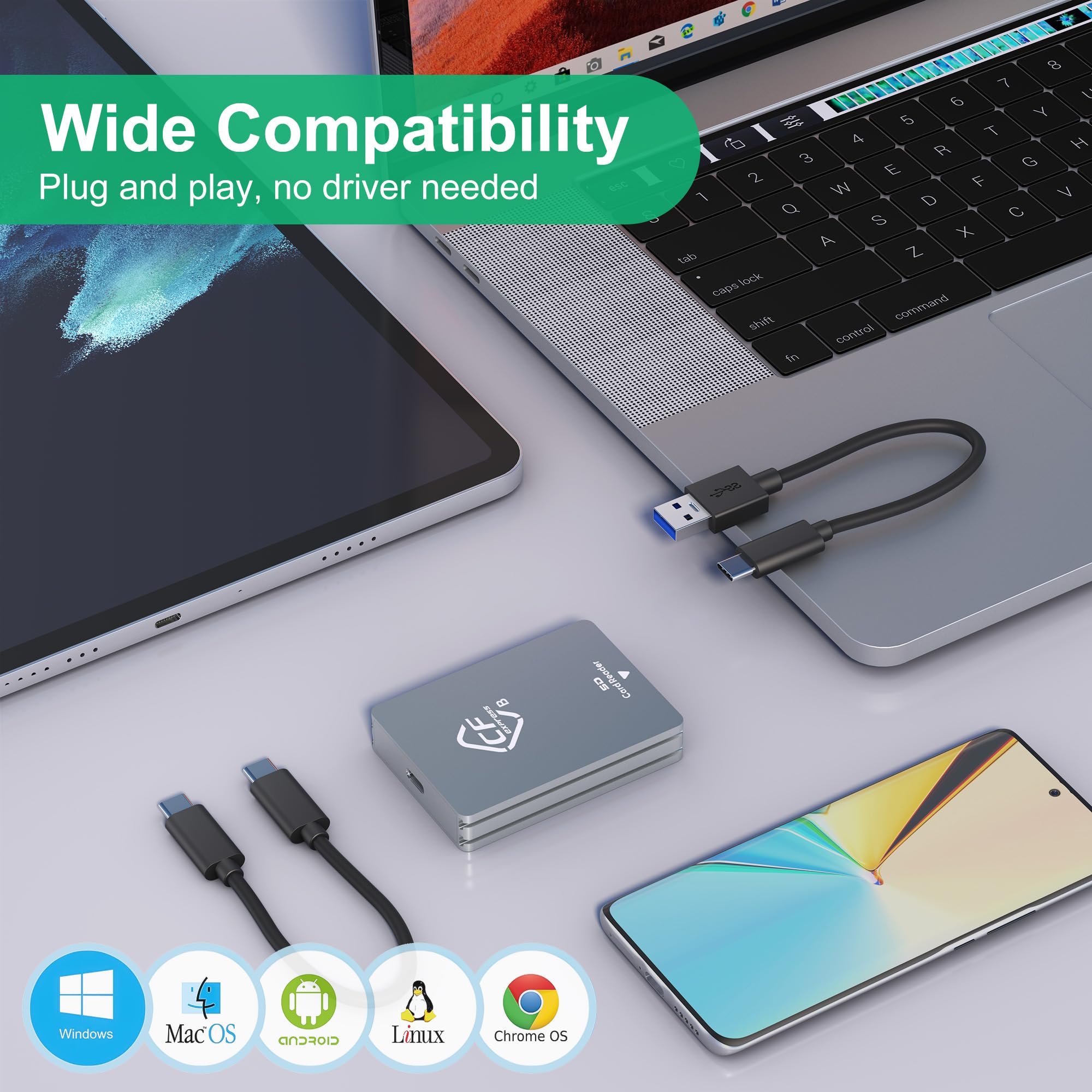Lexar® Professional CFexpressâ„¢ Type B / SDâ„¢ USB 3.2 Gen 2 Reader | Lexar Lecteur CFexpress Type B Sony rétrocompatible USB 3.1 Gen 1 et USB 3.0. Large compatibilité : ce CFexpress Type B lecteur est compatible avec les cartes mémoire CFexpress Type B et SD telles que 32 Go, 64 Go, 120 Go, 128 Go, Max 2 To. Large compatibilité Compatible avec Multi OS (Windows XP/Vista/7/8/8.1/10/11, Mac OS, Linux, Android, etc.) Lecteur de carte Cfexpress multifonction professionnel : le lecteur express 6 en 2 cf est compatible avec les deux CFexpress (Type-B) /XD/MS/CF/SD/TF, ce qui en fait le lecteur de carte idéal à transporter pour les photographes prend en charge des vitesses allant jusqu'à 10 Gbit/s. Conception portable en aluminium : Matériau en alliage d'aluminium, la conception portable compacte pourrait économiser de l'espace, facile et pratique à transporter, l'apparence de mode haut de gamme et la dissipation rapide de la chaleur rendent le lecteur CFexpress de haute qualité et plus durable. Boîtier en aluminium est plus propice à la dissipation thermique et rend le lecteur de carte cf express b/sd plus durable. Lecteur De Cartes Cf Lecteur Carte CFexpress Type B Et SD - USB 3.2 Gen2 10Gbps - Compatible Windows/Mac/Android Lecteur Carte Mémoire USB 3.2 Lecteur Carte Sd Lexar Le port USB de l'ordinateur doit atteindre la vitesse de l'USB 3.2 GEN2. Le lecteur cfexpress type b sdxc et le câble doivent atteindre la vitesse de USB3.2 GEN2 Le but de l'utilisation de la coque métallique est de dissiper la chaleur interne de la carte à travers la coque. Alxum CFexpress Lecteur de Carte, USB C 3.1 Gen 2 à CFexpress Type B... FAQ: Q : Pourquoi le lecteur de carte cf express est-il chaud lorsqu'il travaille ou en veille ? Transfert de données super rapide de 10 Gbit/s : la technologie USB 3.2 Gen 2 prend en charge une vitesse de transfert maximale jusqu'à 10 Gbit/s (1250 Mo/s), prend en charge la lecture et l'écriture rapide de la carte mémoire Cfexpress, des photos haute résolution, des vidéos Full HD depuis votre carte CFexpress. Spécification: Taille : 2,71 (L)*1,96 (L)*0,51 (H)/69 (L)*50 (L)*13 (H)mm, longueur du câble : 7,87/20 cm. R : Cette situation est généralement due au format du fichier disque. Plug & Play, aucune installation de pilote 1 x câble USB C vers USB-A Comparateur de prix en France. Puce intégrée de haute qualité, pas de chaleur, transmission stable sans interruption. L'indicateur LED clignote lorsque le transfert de données est en cours. La vitesse de la carte cf express doit être supérieure à 1000 Mo/s, car tout lien intermédiaire ne pourra pas atteindre la vitesse de GEN2. Alors s'il vous plaît, vérifiez ces trois aspects (Contenu de l'emballage : 1 x lecteur de carte CFexpress Type B/SD, 1 x câble USB-C VERS C, 1 x câble USB-C VERS A, 1 x manuel d'utilisation). 1 câble USB C vers USB-C Lecteur carte CFexpress professionnel de Type B/SD : le lecteur cf express type b à double emplacement est compatible avec les cartes CFexpress (Type-B) et SD, ce qui en fait le lecteur de carte idéal à transporter pour les photographes. 1 x manuel d'utilisation Veuillez sélectionner le format de fichier EXFAT lors du formatage de la carte. Emplacement SD : conçu pour SD, SDXC, SDHC, RS-MMC
