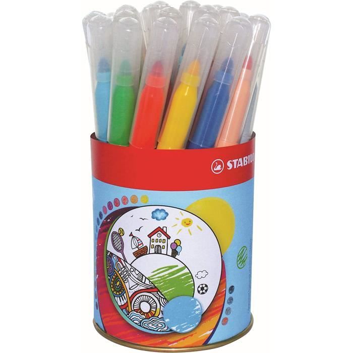 24 feutres avec capuchon de sécurité ventilé pour plus de sécurité ! Les Superstars One de JOLLY garantissent un plaisir de dessin maximal grâce à leur pointe solide et épaisse ainsi qu'à leurs couleurs vives et saturées 24 feutres avec capuchon de sécurité ventilé pour plus de sécurité ! Feutre Stabilo JOLLY Superstar DUO Feutre De Coloriage, Une Pointe épaisse Et Une Pointe Fine, Feutre De Haute Qualité, Lavable, 24 Pièces En étui Carton Feutres Coloriage Enfants BIC Pack 8 Feutre coloriage Decoralo Corps et Pointe Extra-large Encre lavable Assortis - Etui carton x 8 : Corps Extra-large facile à tenir - Encre lavable - Ne traverse pas le papier - Pointe Encres vives et lavables : 24 couleurs intenses qui se lavent facilement. Fabriqué en Autriche : Qualité et sécurité issues d'une production autrichienne L'encre est lavable sur la plupart des textiles. 24 couleurs éclatantes Pointe robuste 100% conçu et produit en Autriche Pochette feutres de 24 Couleur maxi jumbo super washable CARIOCA - Librairie Hiba