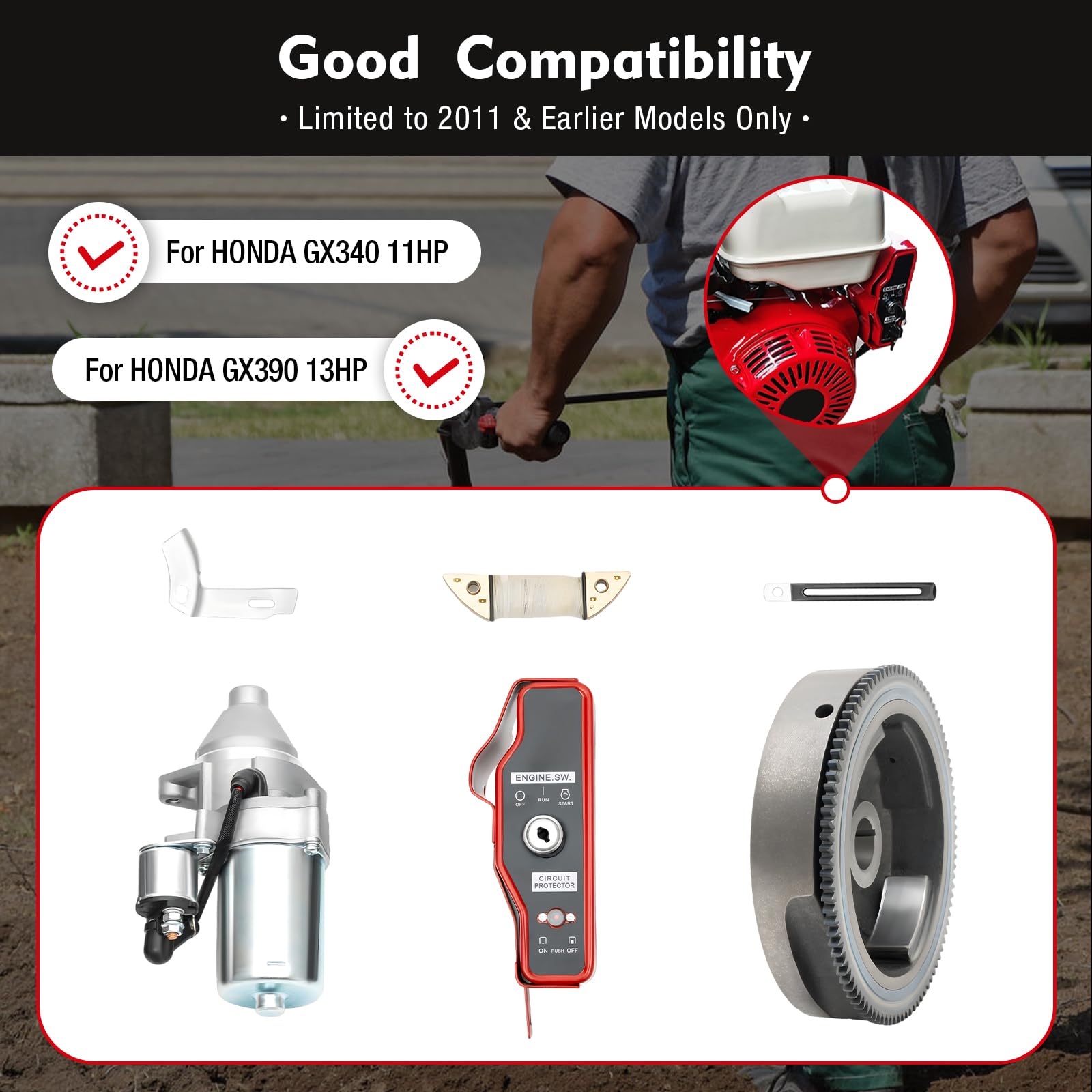 Achetez Kit de démarrage électrique pour Honda, moteur de démarrage, adapté pour Honda Gx160, Gx200, 5,5 Hp, 6,5 Hp, Vope2, Gx390, 13Hp, Gx340, 11Hp, Vope1 sur Aliexpress pour . Trouvez plus de produits , et . Appréciez Transport maritime gratuit dans le monde entier Vente à durée limitée Facile à rendre Outils pratiques : installez ce kit de démarrage électrique sur votre moteur, et vous pouvez le démarrer plus facilement et plus efficacement, ce qui facilite votre travail. Kit De Démarrage électrique Wiyuer 12V Pour Honda GX340 11HP Et GX390 13HP (2011 Et Antérieurs) Avec Aimant, Volant D'inertie Et Moteur De Démarrage électrique RECOIL PULL START Carburateur Allumage Bobine Kit pour Honda GX340/390 11/13HP, - EUR 57,94.À VENDRE! 355727493026 RECOIL PULL START Carburateur Allumage Bobine Kit pour Honda GX340/390 11/13HP, - EUR 57,94. À VENDRE! 355727493026 Durable : ce produit utilise de l'aluminium et du fer de haute qualité avec des procédés de moulage, d'estampage et de moulage par injection, ce qui rend ce produit très résistant, fiable, antirouille et résistant à l'usure. Facile à installer : la conception qui correspond à votre moteur et la distribution claire des câbles sont idéales pour les bricoleurs pour terminer l'installation, de sorte que vous pouvez profiter d'un sentiment d'accomplissement des composants à la finition ! SOLÉNOÏDE RELAIS DE démarrage fiable et efficace pour Honda GX390 GX340 GX270 EUR 13,57