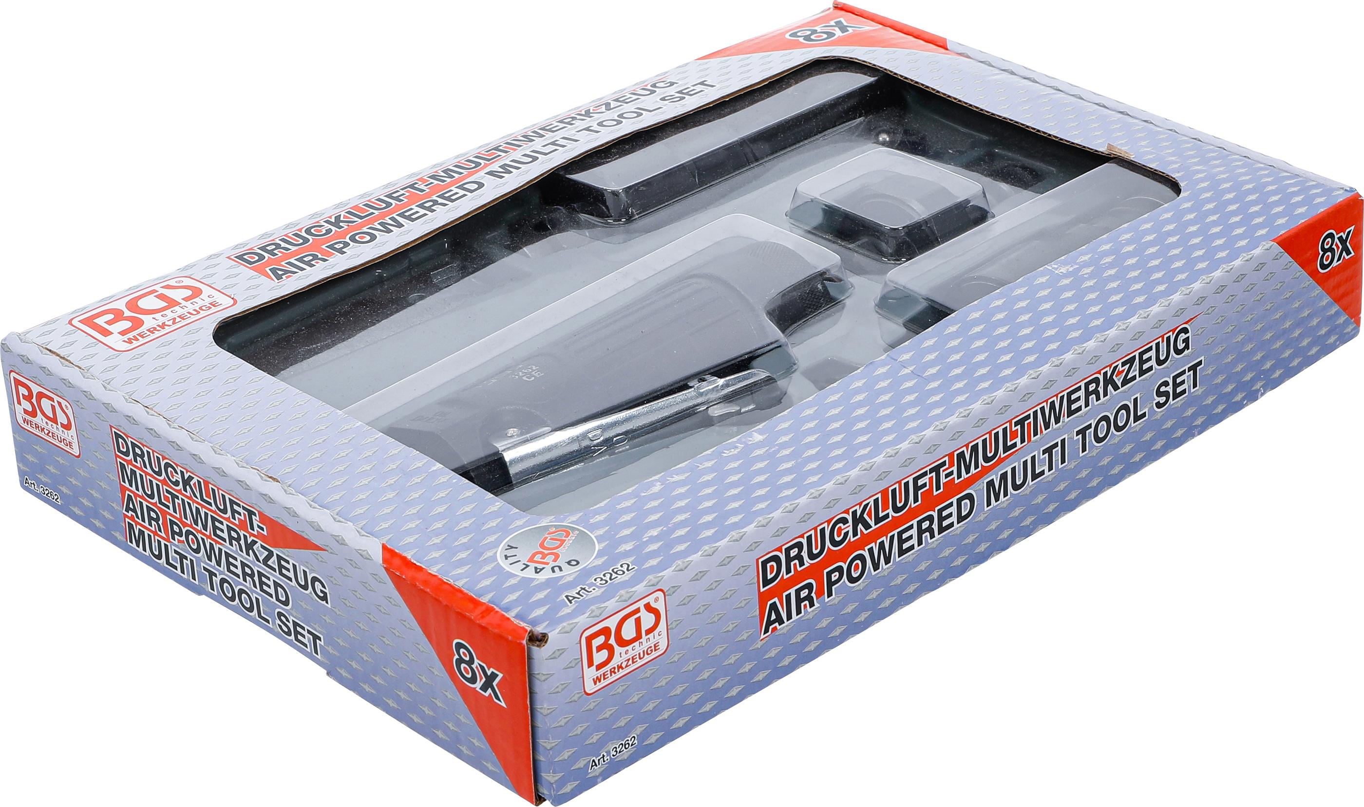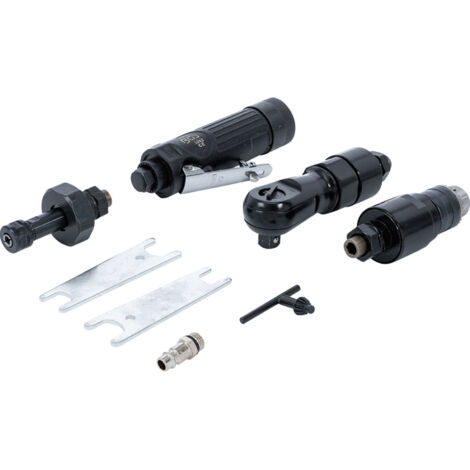 Coffret 23 pièces embouts vissage douilles avec cliquet à embouts BGS Raccord d'air comprimé 6,3 mm (1/4) Avec clés à mandrins Taille d'attachement 6,3 mm Longueur 215 mm Cliquet à entraînement carré avec mécanisme de type « tourner pour inverser ». Raccord rapide pour le changement rapide et simple des têtes Dremel Pneumatique Perceuse Pneumatique Perceuse Pneumatique À 90 Degrés Perceuse Pneumatique Coudée À 90 Degrés Burineur Pneumatique Aussi facile qu'un coupleur d'air. Consommation d'air : 115 l / min. Pression max. 6,3 bars. Raccord air comprimé 1/4". 1 CLIQUET PNEUMATIQUE. Serrage et... Meuleuse, cliquet et perceuse pneumatique - 3 en 1 · Régime max. 150 tr/min · Carré 12,5 mm (1/2") · Longueur 278 mm · Moment de couple max. 81 Nm Données spécifiques de la perceuse: Régime max. 2200 tr/min Données spécifiques du cliquet: Régime max. 150 tr/min Carré 12,5 mm (1/2) Longueur 278 mm Moment de couple max. 81 Nm Raccord rapide à air comprimé
